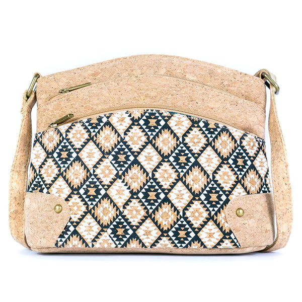 Handcrafted from natural cork and adorned with elegant floral and tile-inspired patterns, this bag captures the timeless charm of Mediterranean artistry. Decorative rivets along the edges elevate its sophistication, while a concealed back zipper pocket keeps your essentials secure.